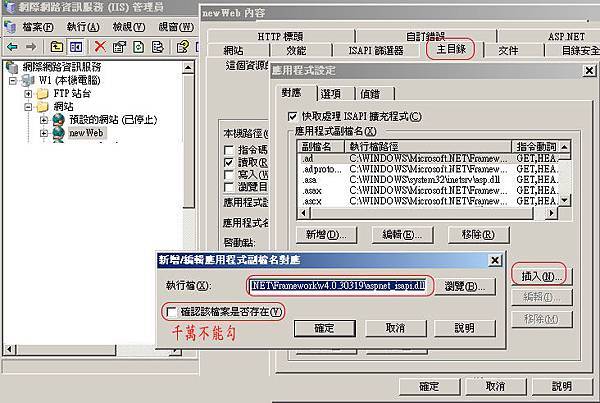 注意:"確認該檔案是否存在" 不能勾。<--很重要,不然網站會不能跑