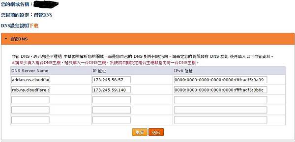 1.到網域的管理介面中設定由 cloudflare 代管 dns